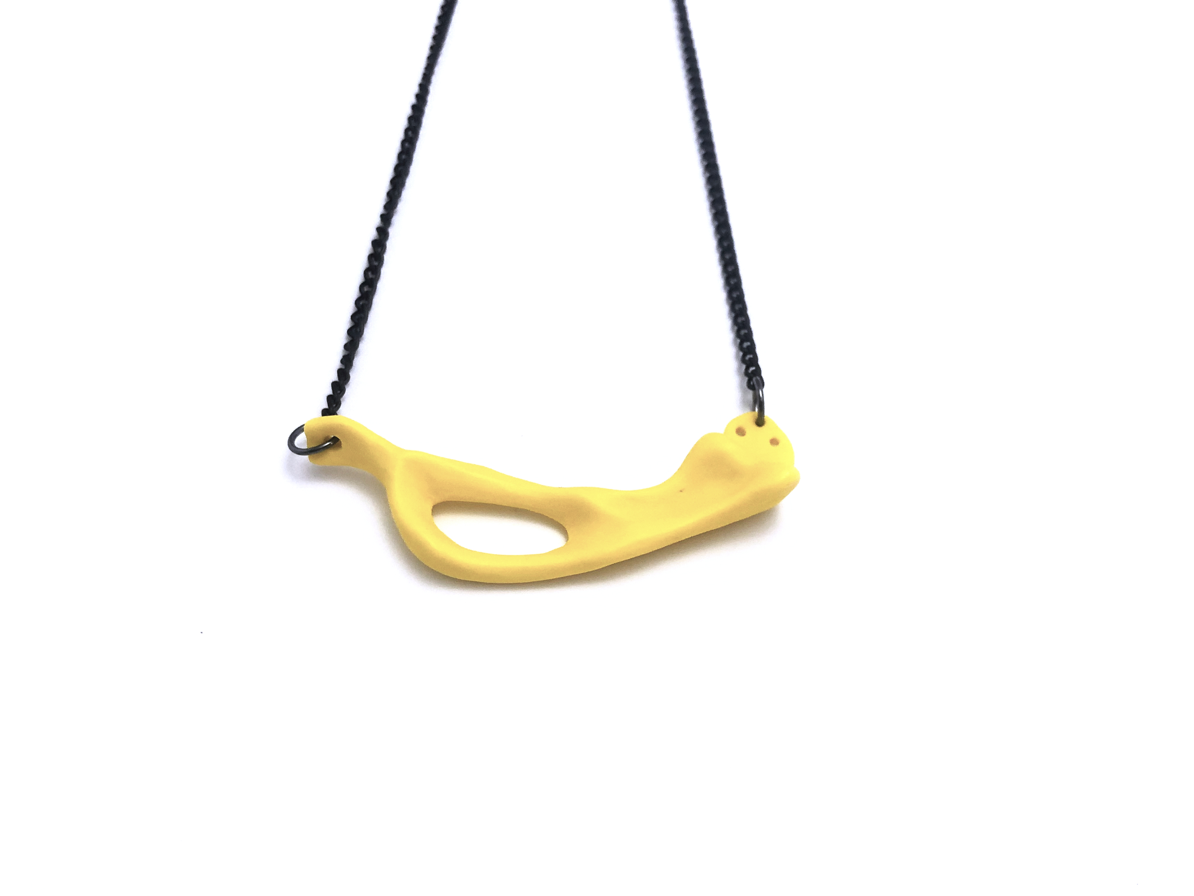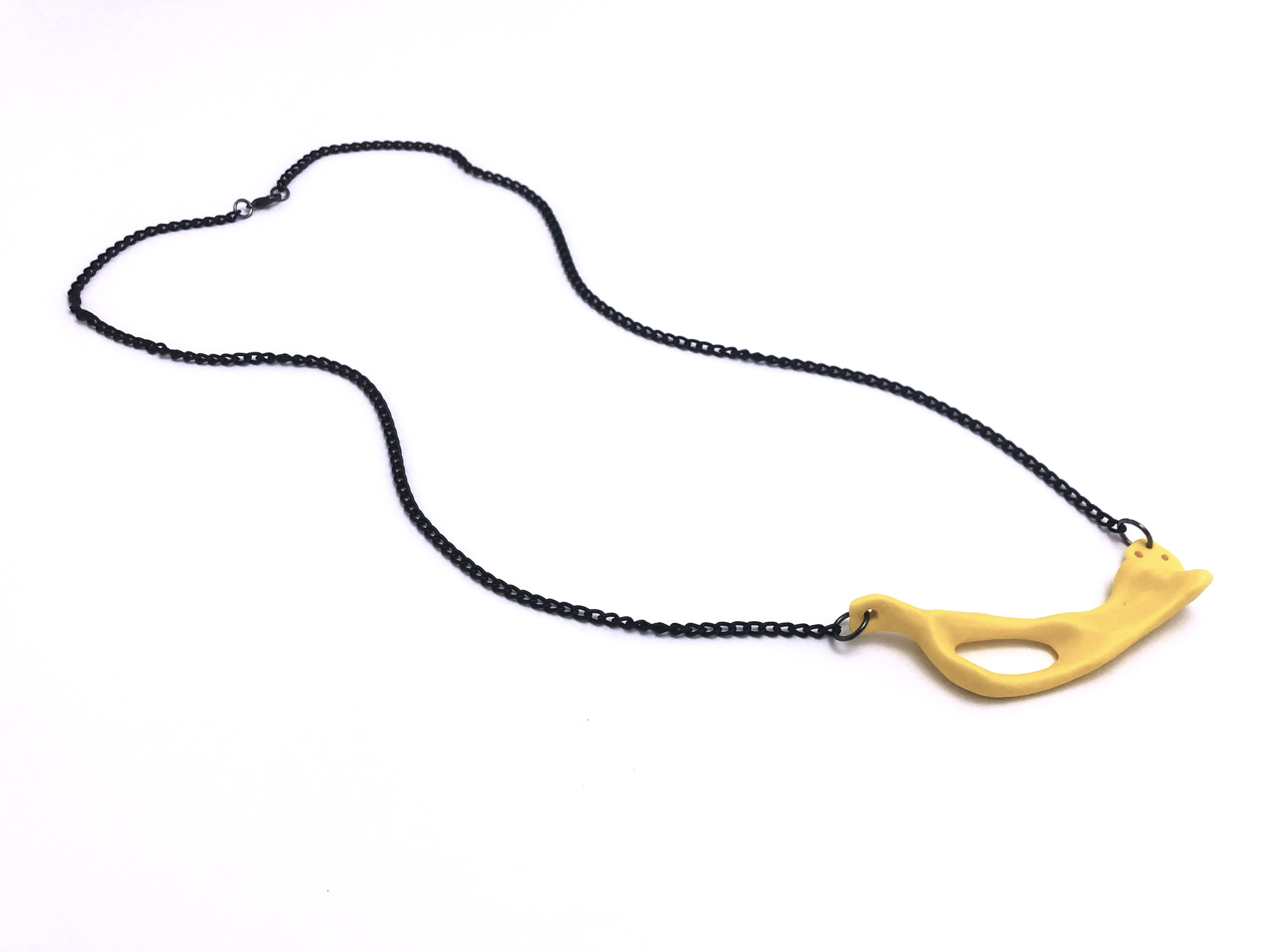 Γλυπτό κολιέ με κίτρινη πορσελάνη και μαύρη αλυσίδα αλυμινίου.