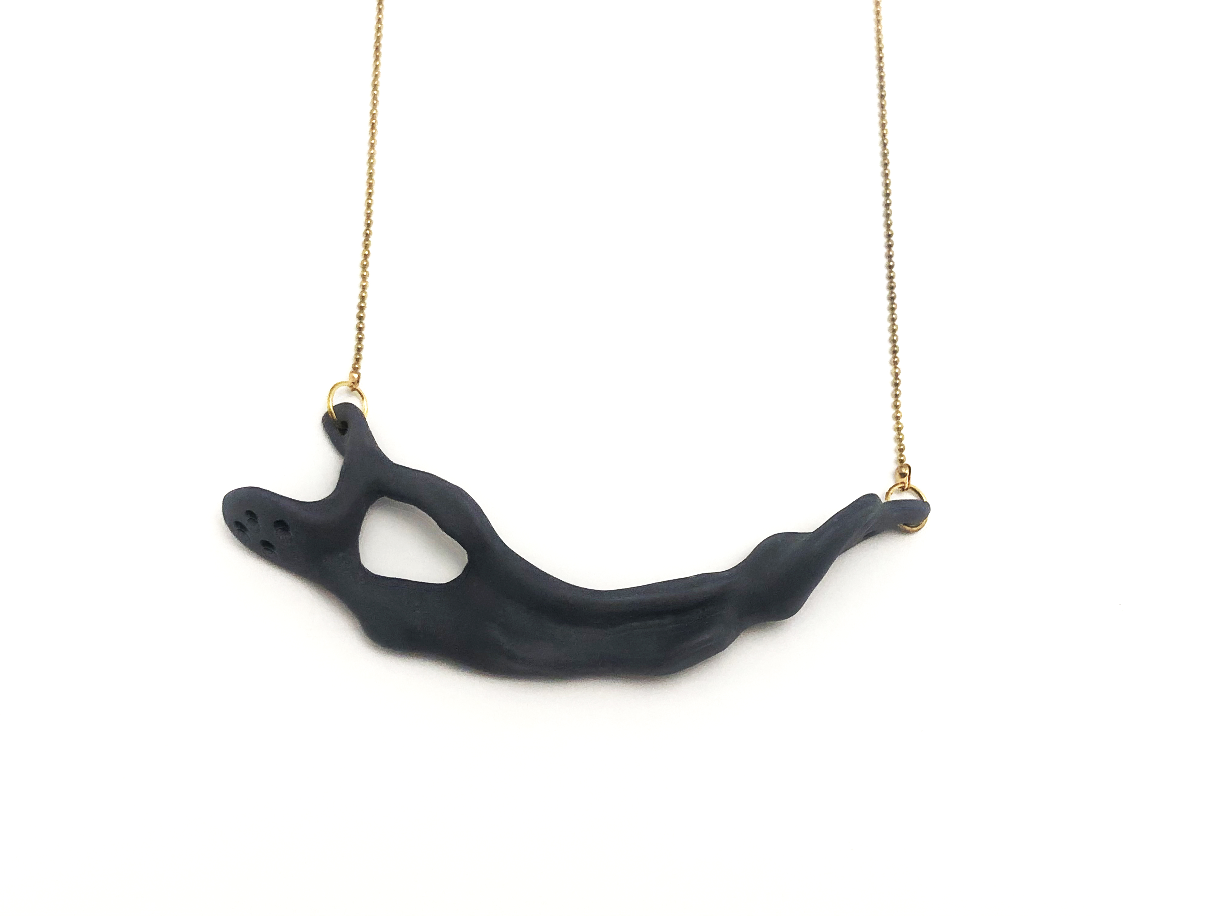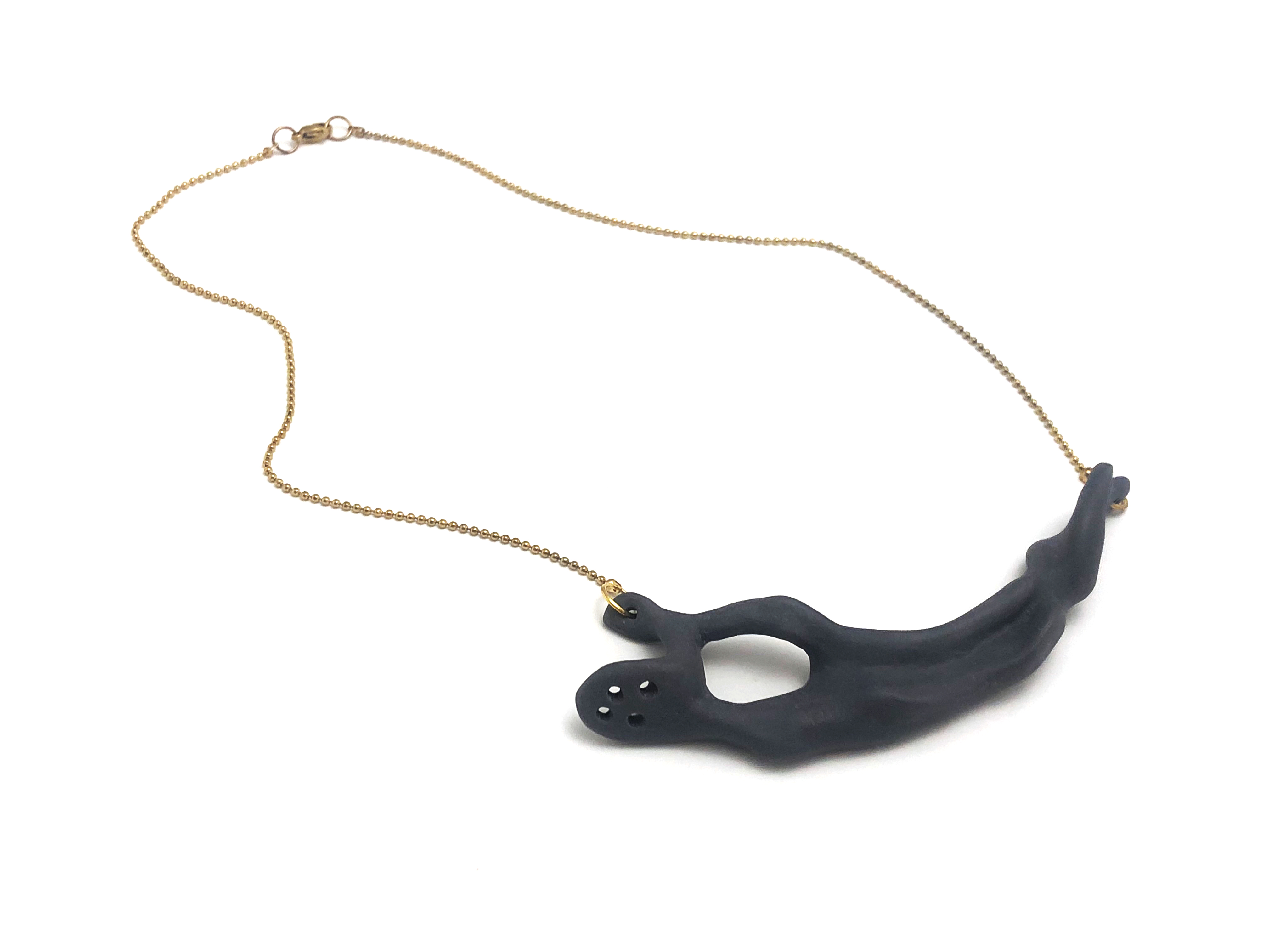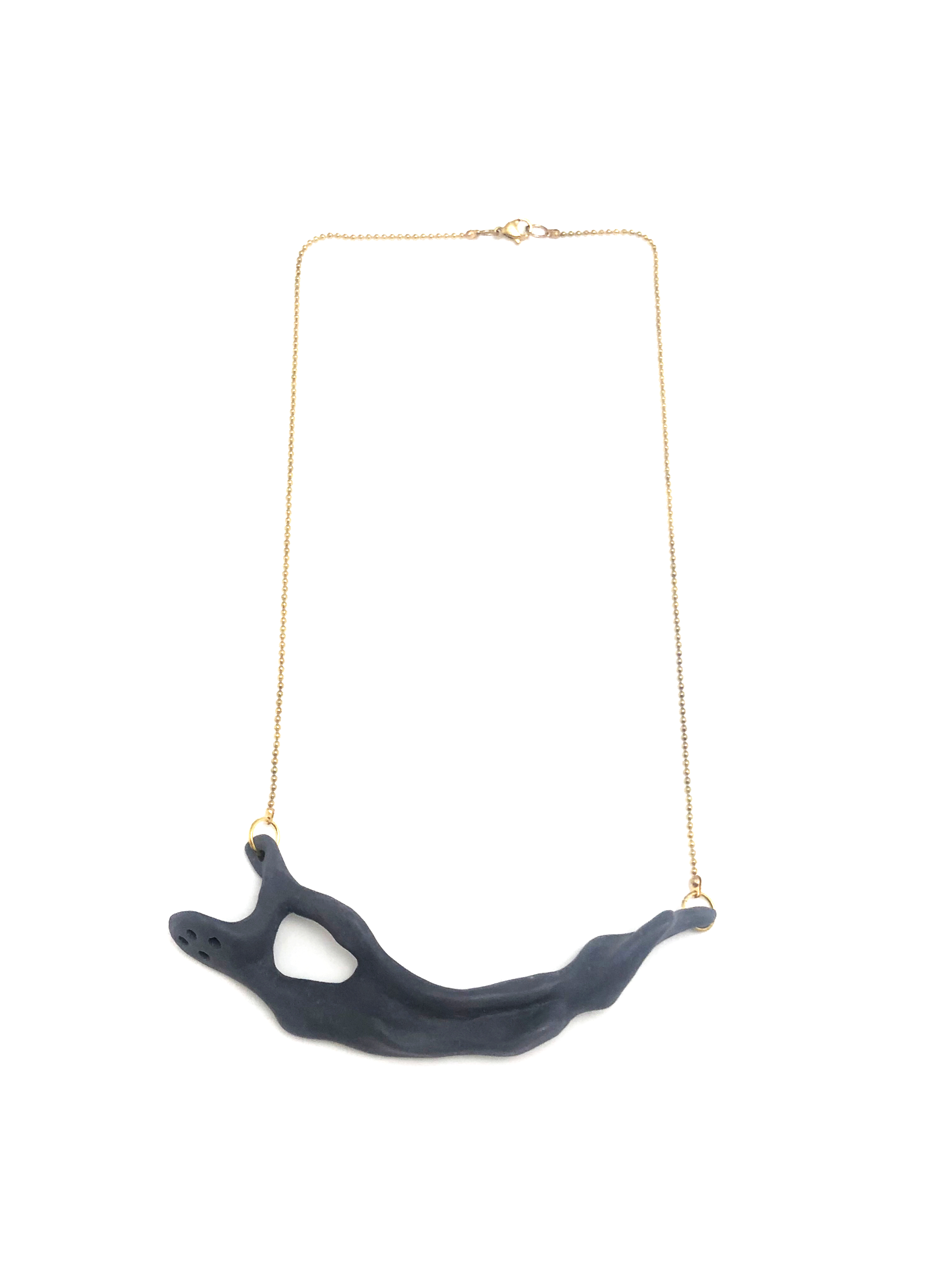 Γλυπτό κολιέ από μαύρη πορσελάνη χρυσαφί ατσάλινη αλυσίδα.